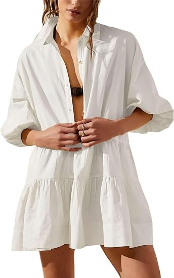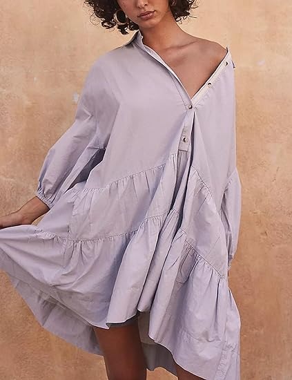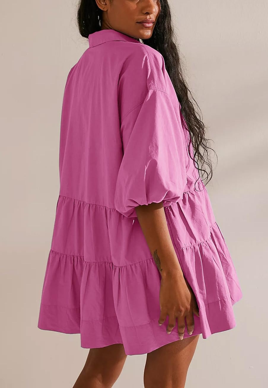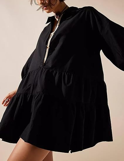 The casual shirt dress is adorned with a simple yet elegant button closure. The puff short sleeves and flowy cut also gives it more casual and elegant. designed with two pockets side, this babydoll dress offers both style and functionality at once.